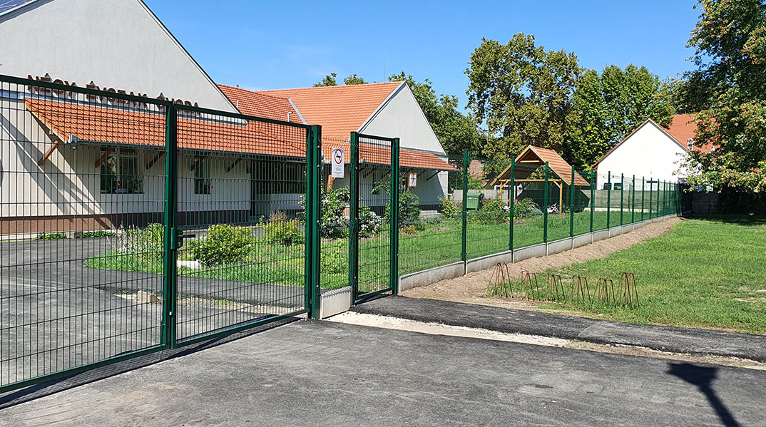 Elkészült az új kerítés, megtörtént az aszfalt burkolatok felújítása, új udvari játékok kerültek felállításra és egy udvari eszköztároló építmény is elhelyezésre került.
